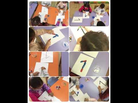 Şişe kapağı, fasulye, çeşitli büyüklükte ataşlar kullanarak bir rakamını yazma çalışması yaptık.
